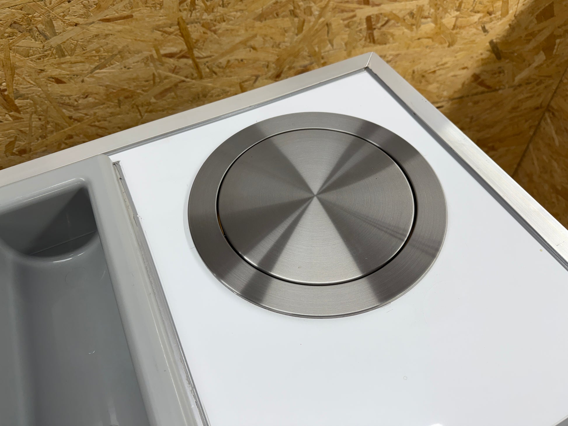 Stainless Steel Flip Lid: Hygienic waste disposal for wrappers & used stirrers.