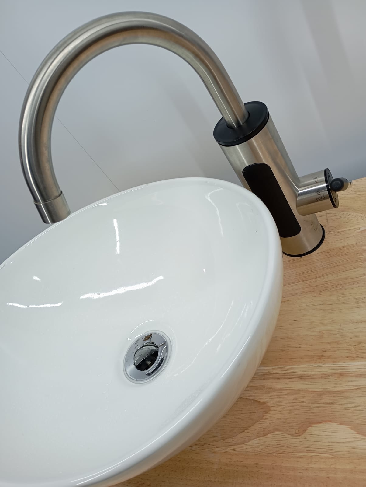 This self-contained unit draws water directly from a water butt using a built-in 12V on-demand pump and heats it via a 240V electric mixer tap. The unit operates from a single 13A plug.